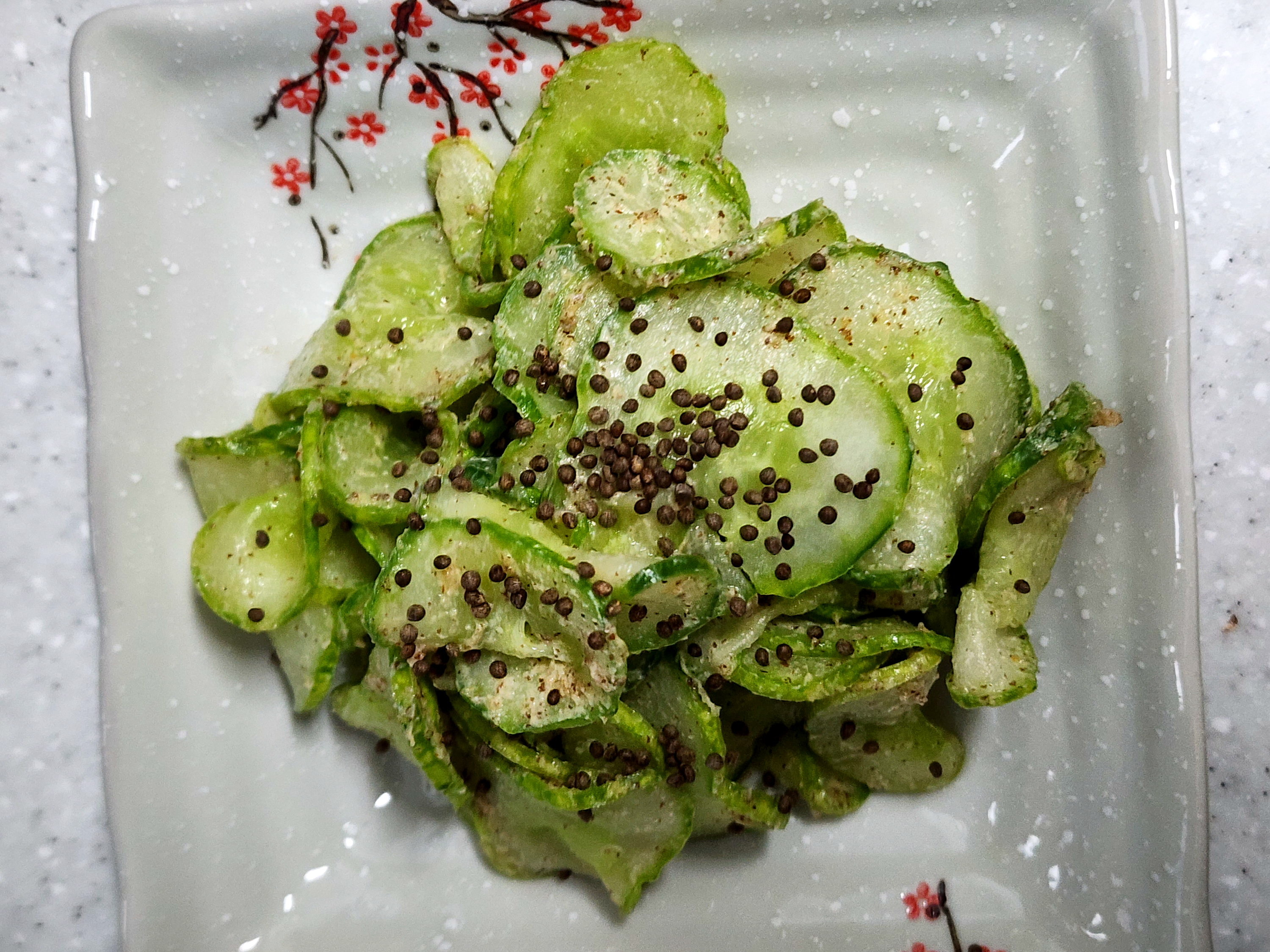 이렇게 고소한 오이들깨무침이 완성되었어요.