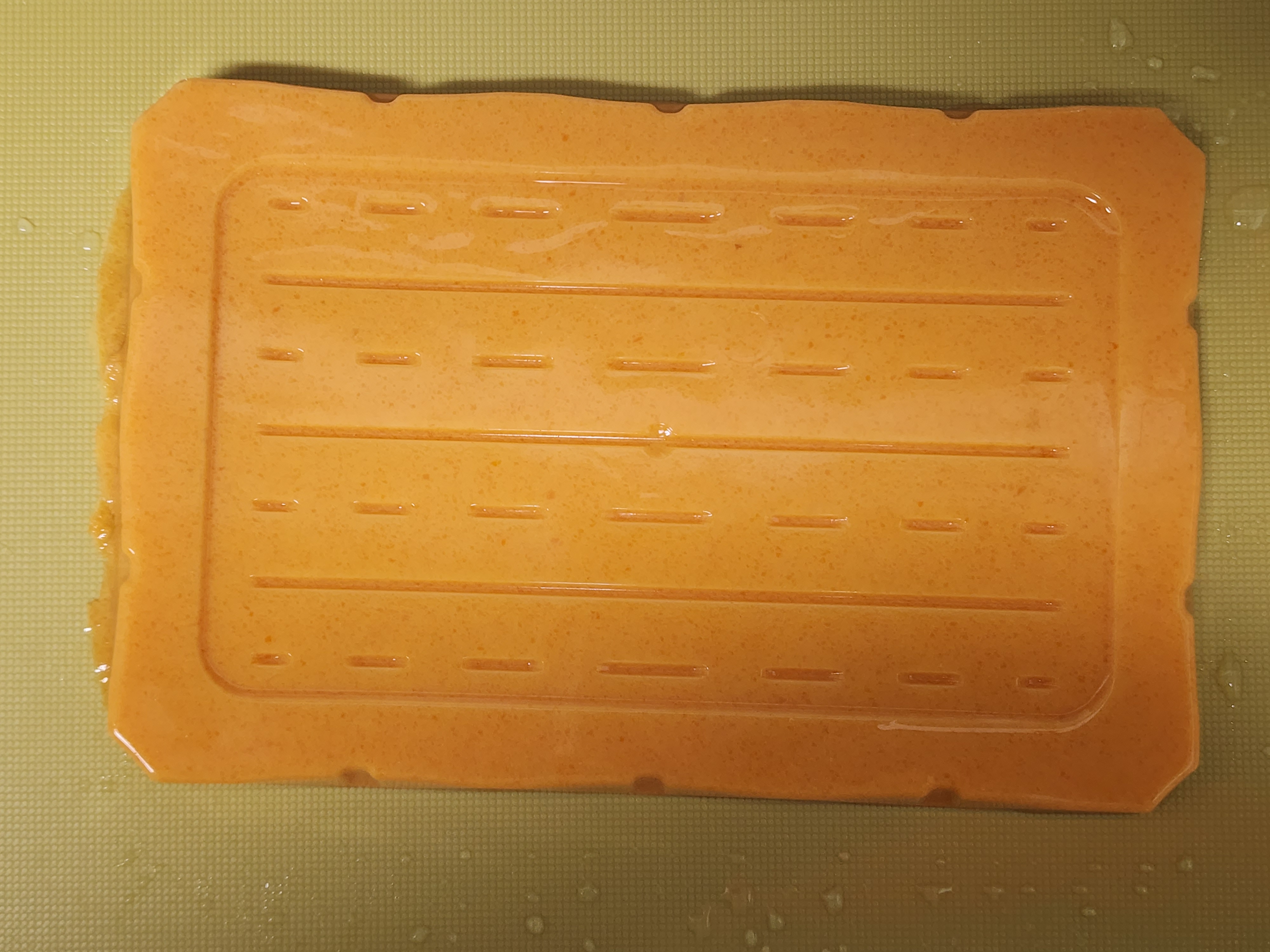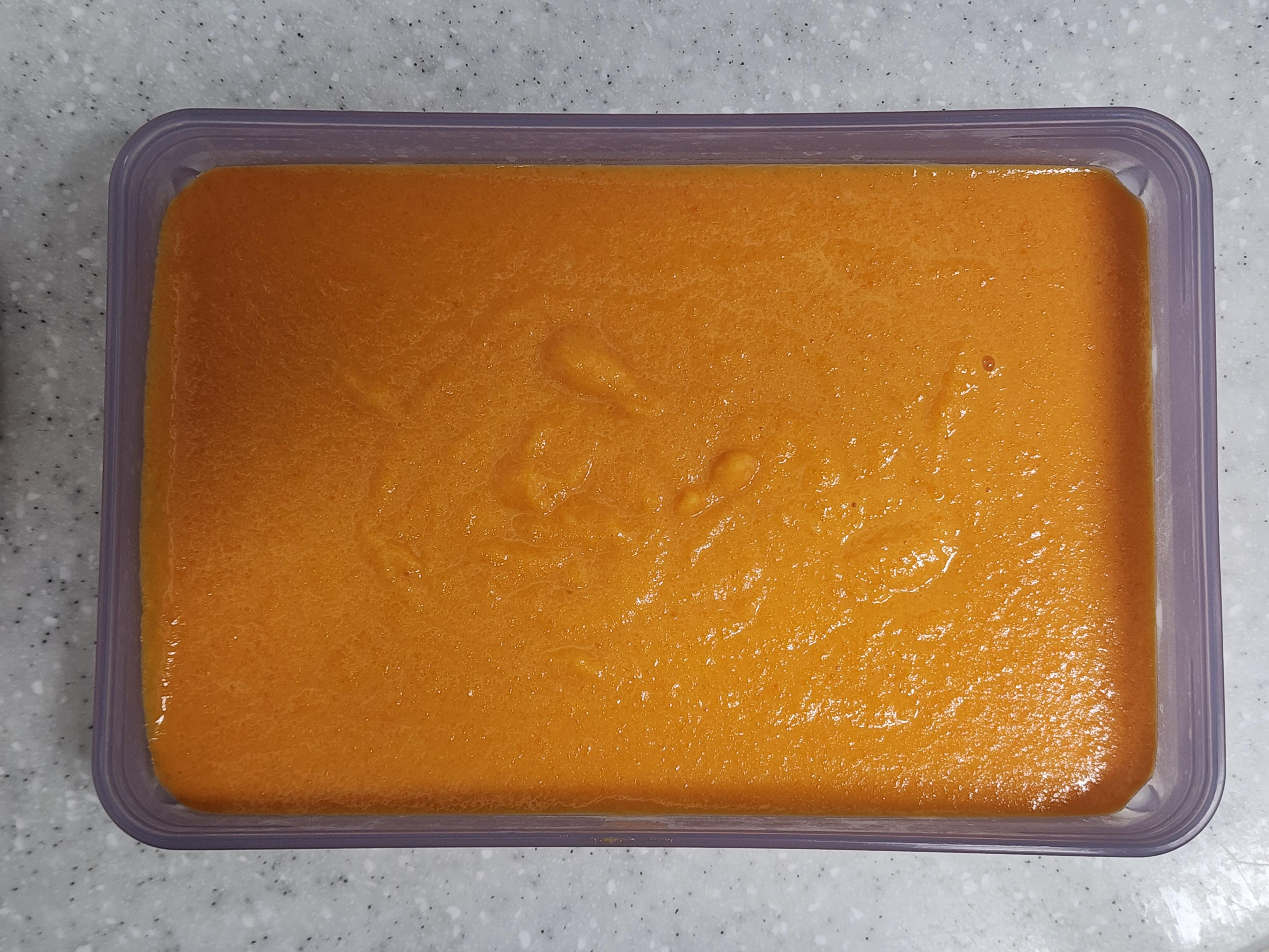 6. 네모난 틀에 끓인 당근을 옮겨 담아주고 냉장고에 1~2시간 정도 굳혀주세요.