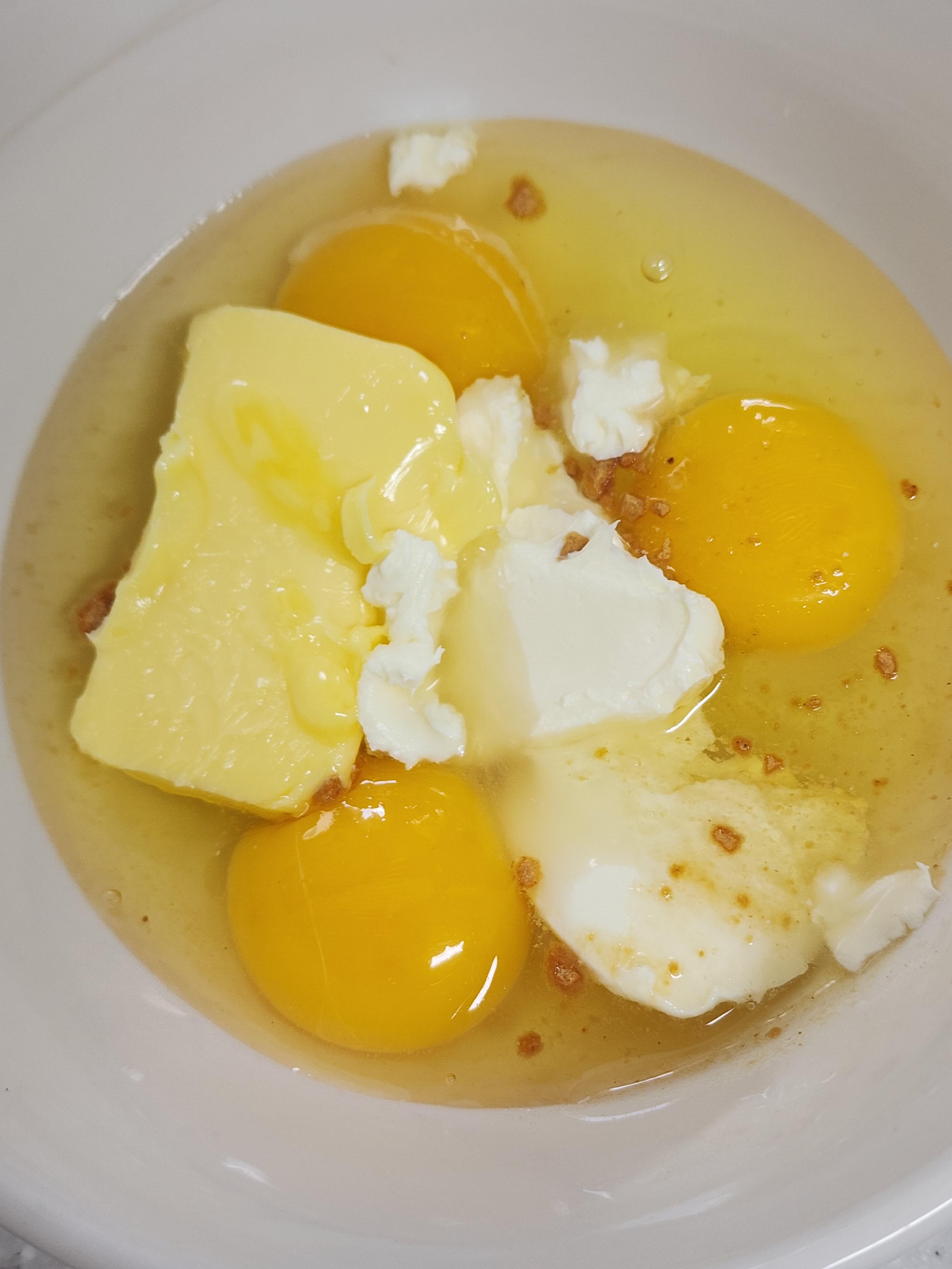 나중에 계란소스 만들 때 재료들이 잘 섞으려면 계란이랑 버터, 크림치즈 전부 실온에 잠시 두셨다가 사용하시는 게 편하실 거예요.