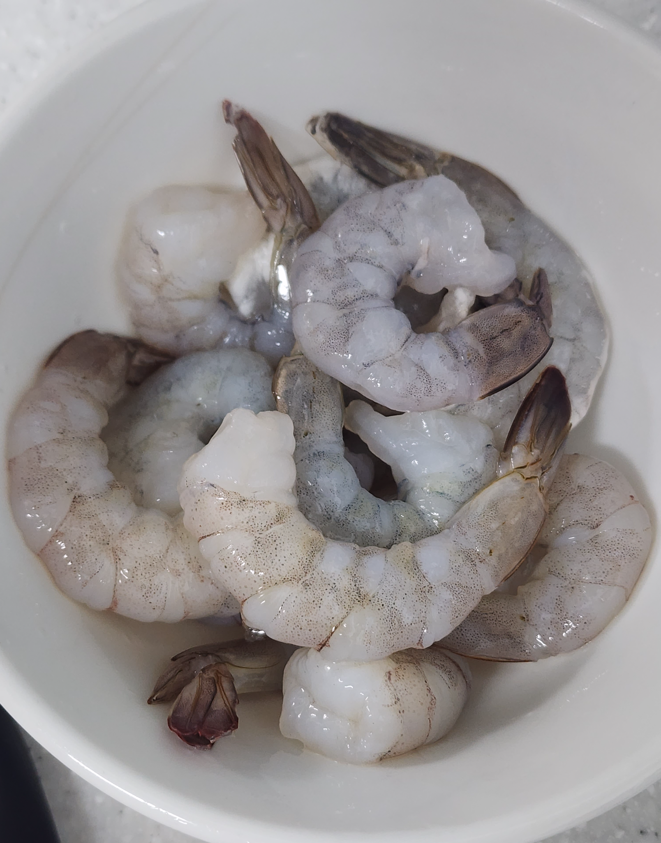 진서연 님은 냉장새우를 사용했는데 저는 냉동새우를 찬물에 해동시켜서 사용했어요.