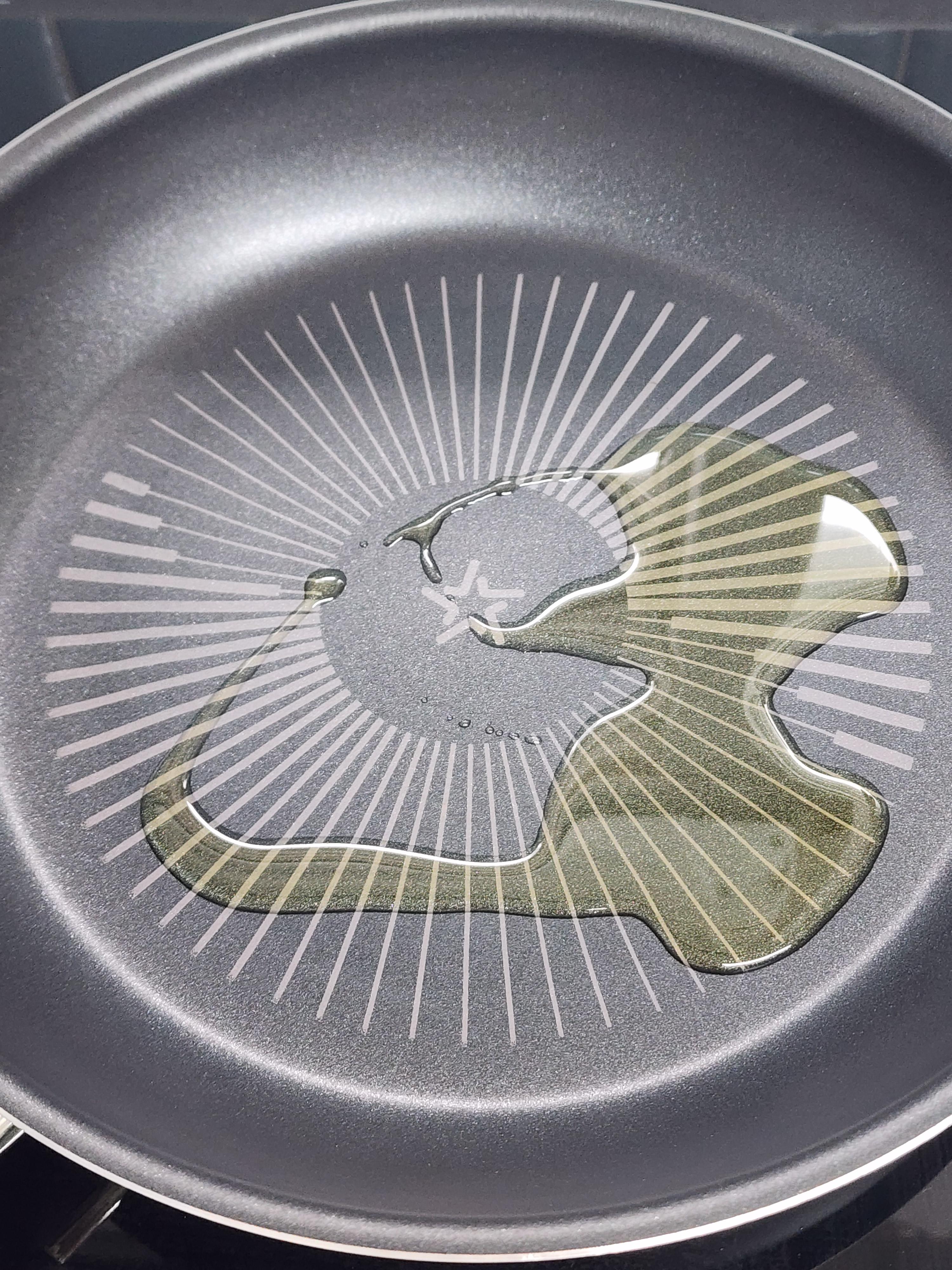 6. 팬에 기름을 두르고 새우패티를 올려 노릇하게 구워주세요.