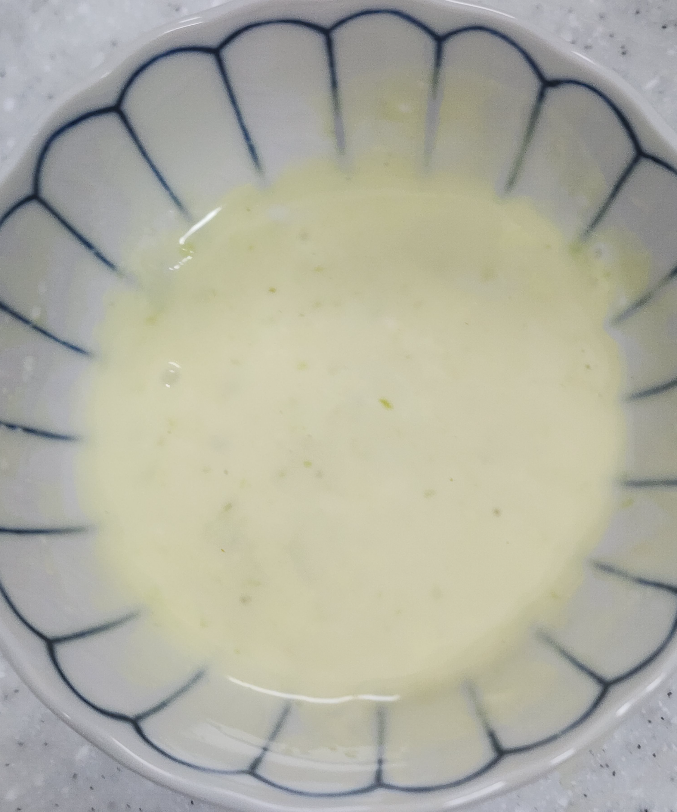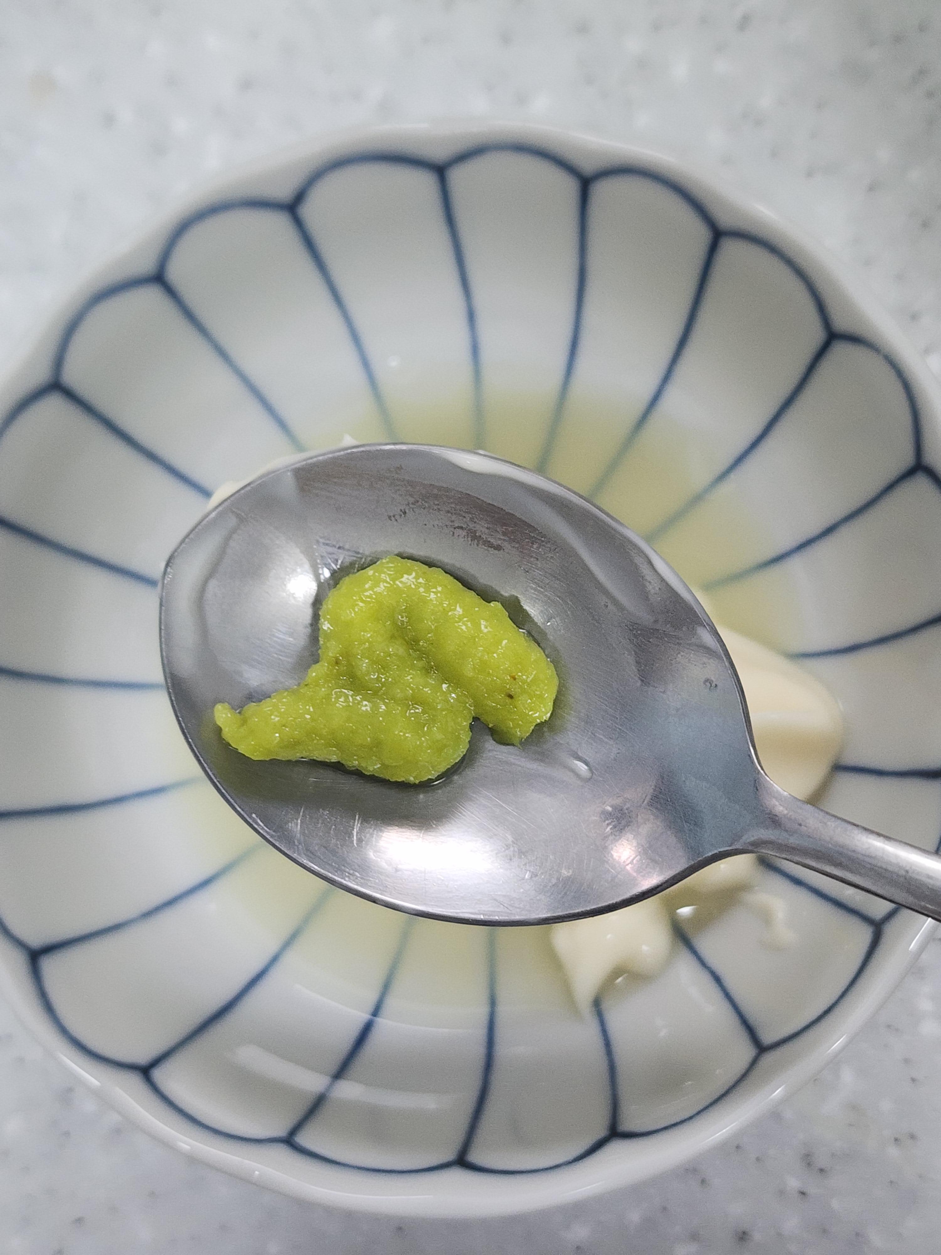 소스 재료 : 마요네즈 1T, 레몬즙 1T, 알룰로스 0.7T, 고추냉이 1/2T