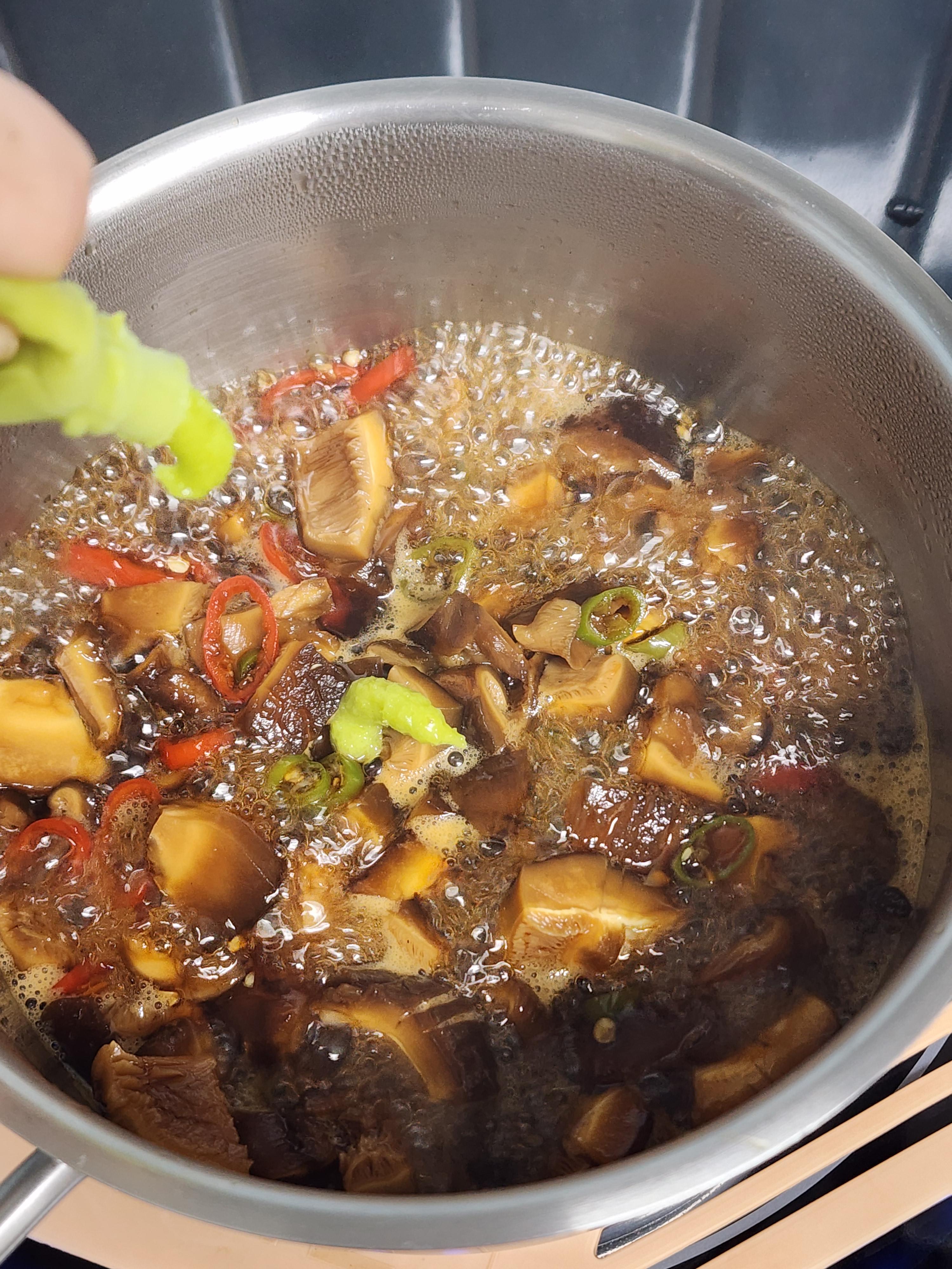 4. 졸여진 표고장에 고추냉이 1T를 넣어 섞어주면 완성입니다.