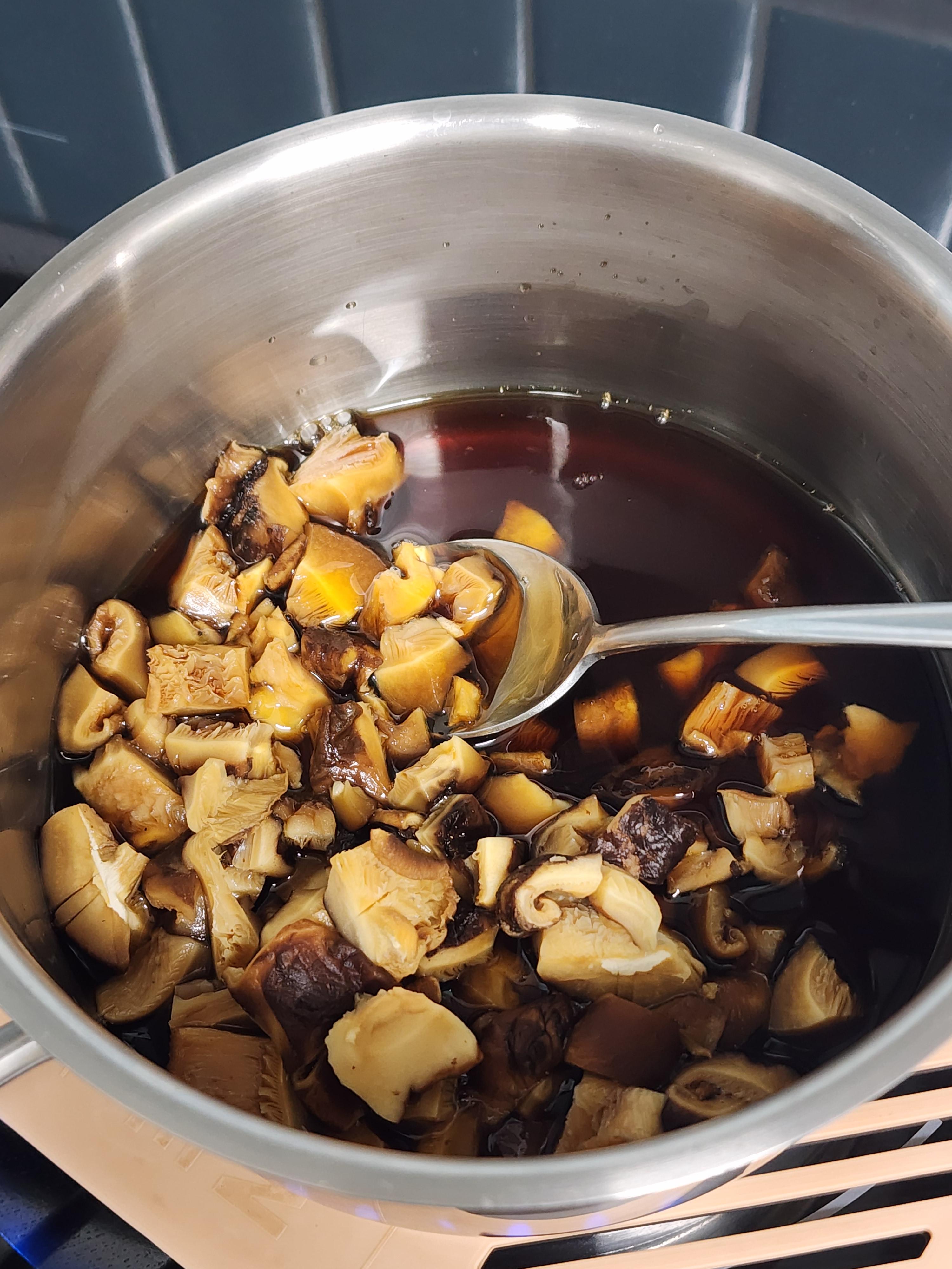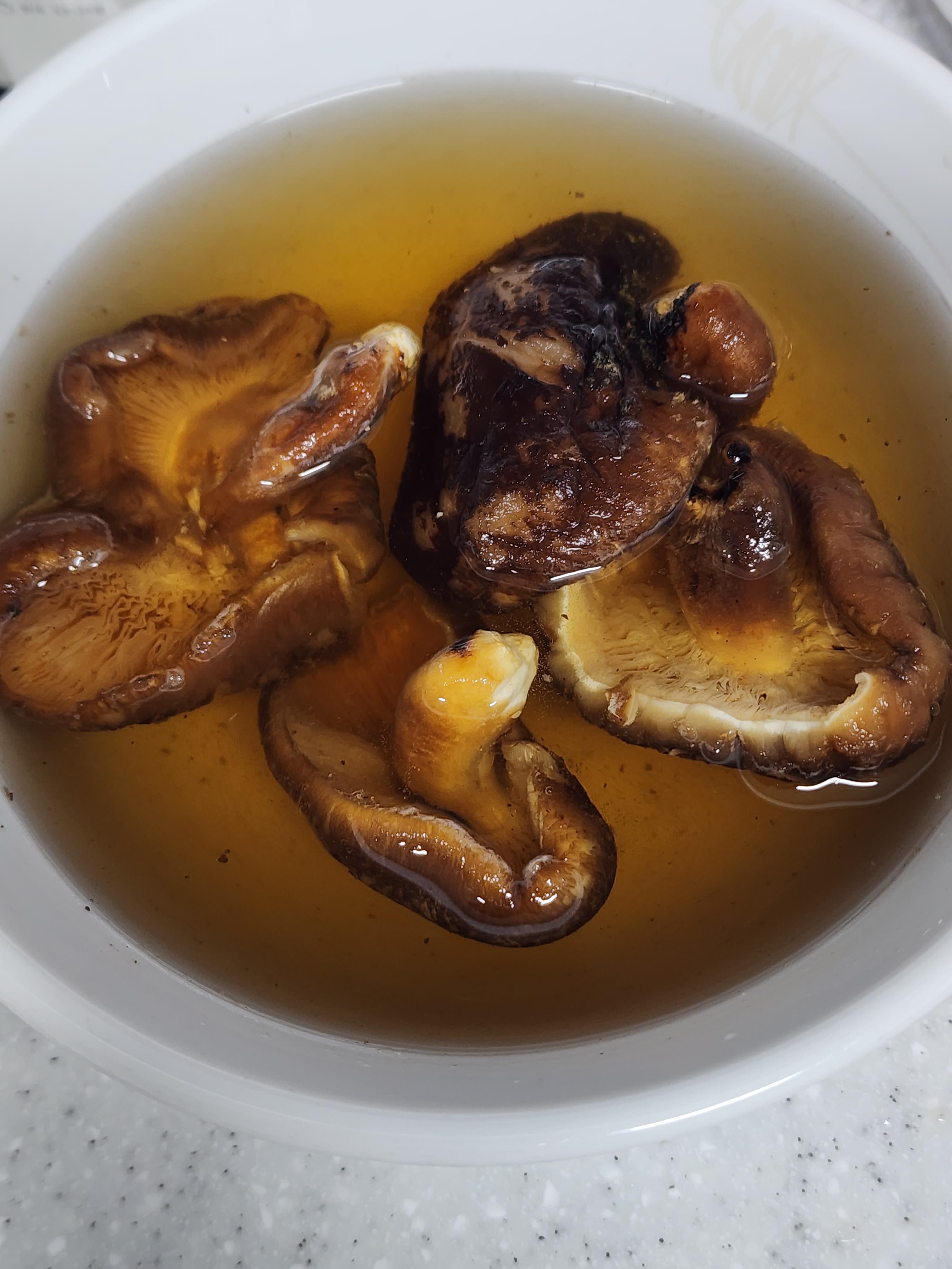 표고버섯을 불리고난 물은 버리지 말아 주세요.