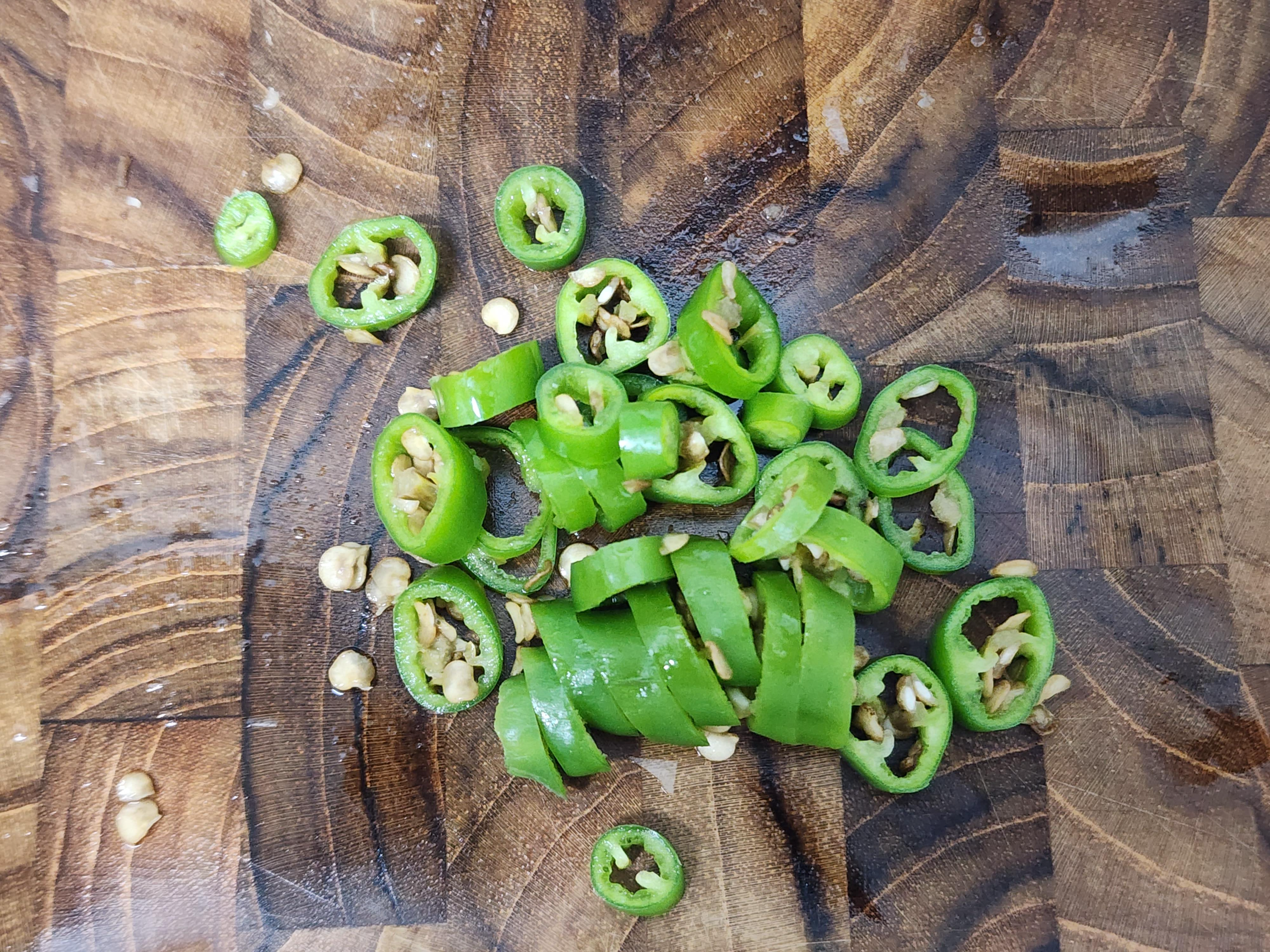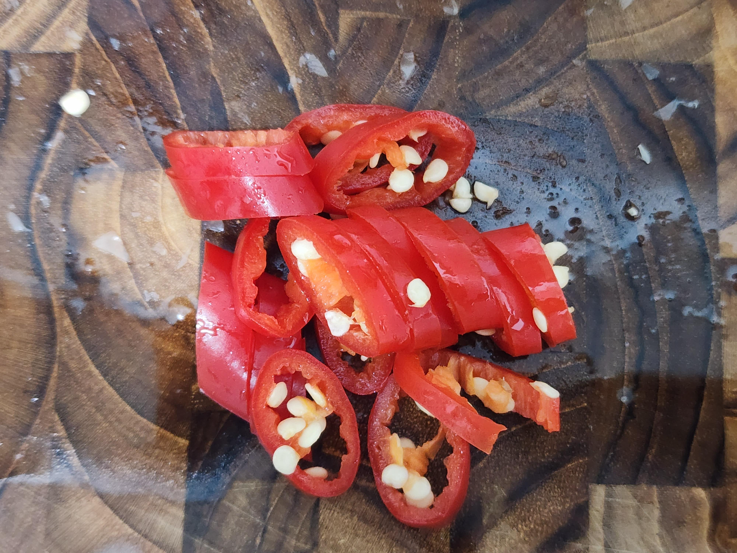 2. 청양고추 1개, 홍고추 1개를 송송 썰어서 준비해 주세요.