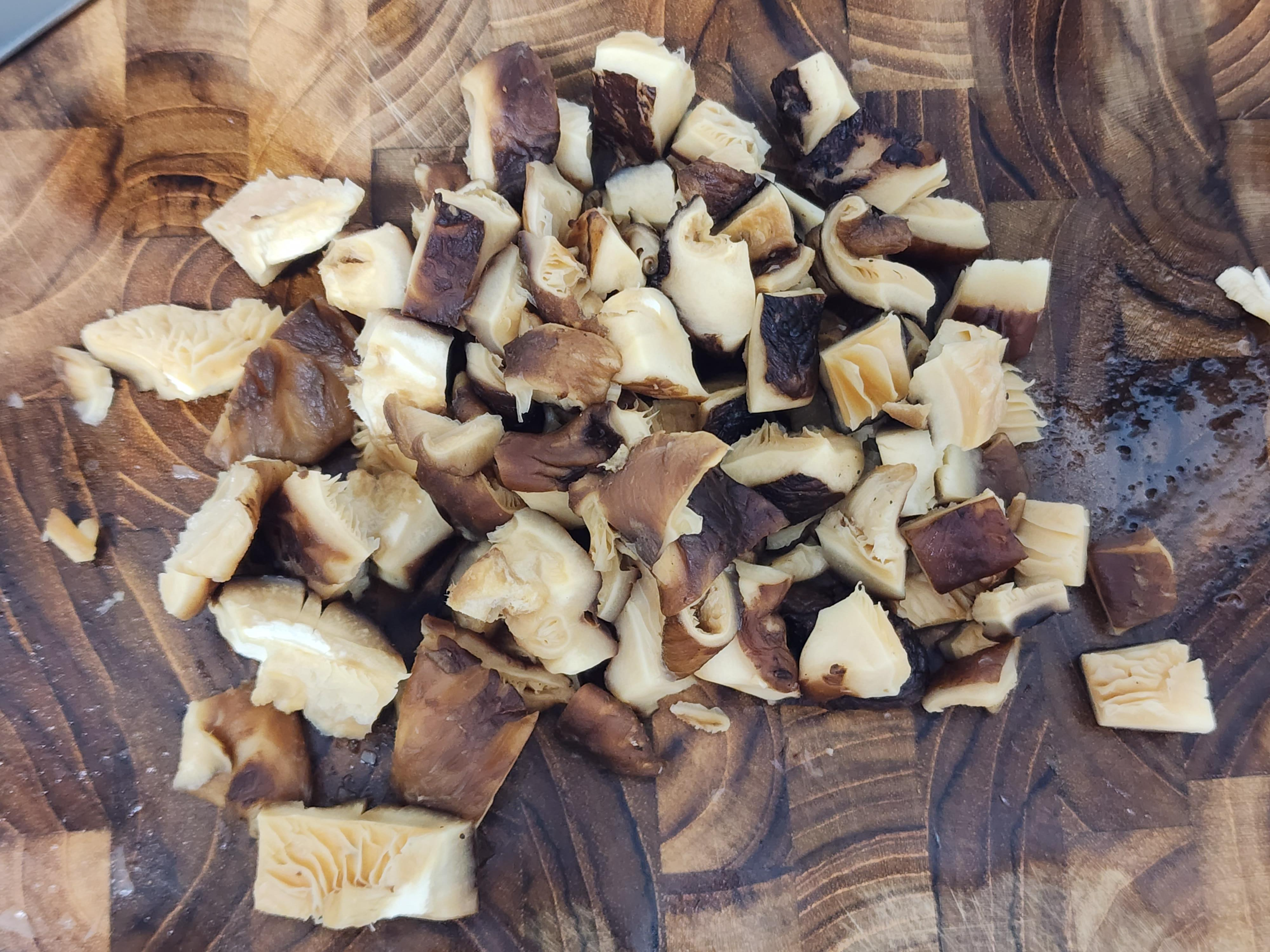 표고버섯은 식감을 위해서 너무 잘게 다지지 말아 주세요.