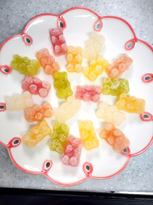 2. 충분히 불린 하리보를 종이포일을 하나 깔고 그 위에 나중에 떼어내기 쉽게 따로따로 놓아주세요.