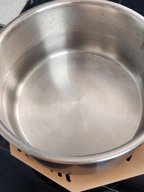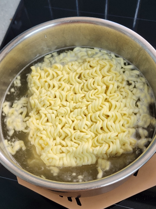 5. 냄비에 물을 붓고 짜장라면 2개를 넣고 익혀주세요.
