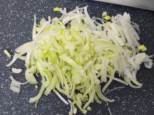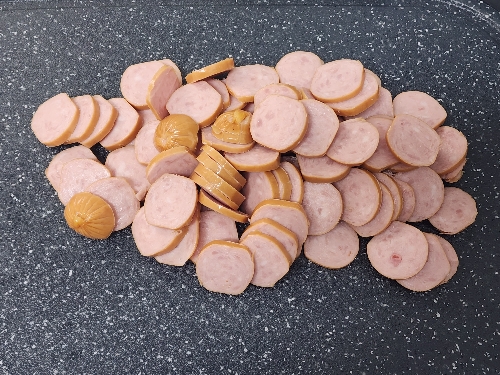 1. 대파를 반으로 갈라 송송 썰어주고 소시지 2개도 얇게 썰어 준비해 주세요.