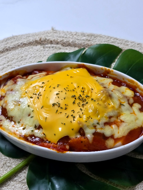 이렇게 토마토소스 떡그라탱이 완성되었어요.