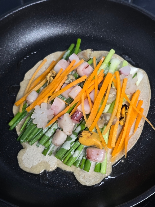 이렇게 메밀삼선해물파전이 완성되었어요.