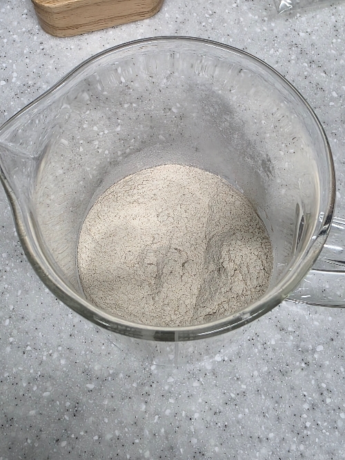 1. 메밀가루에 물을 1대 1 혹은 그것보다 조금 더 부워주세요.