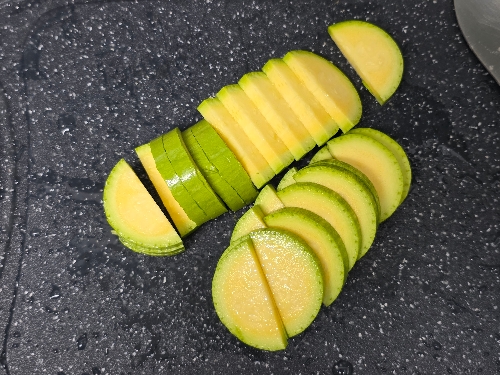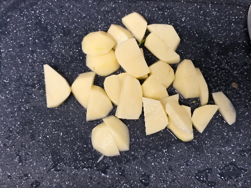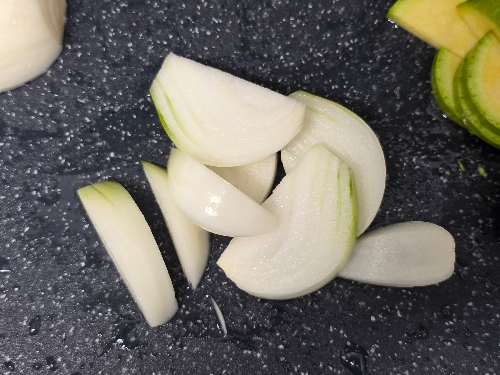 2. 양파, 감자는 듬성듬성 썰어주고 애호박은 반달모양으로 썰어주세요.