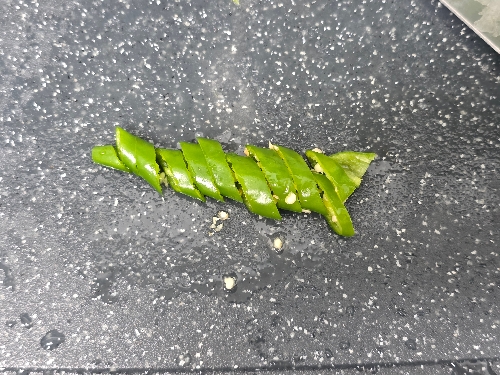 3. 청양고추는 송송 썰어주고 대파는 어슷썰기 해주고 부추는 듬성듬성 썰어 준비해 주세요.