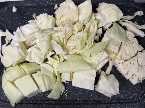 1. 양배추를 큼지막하게 썰어주세요.
