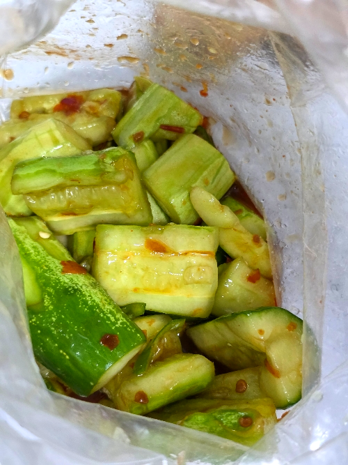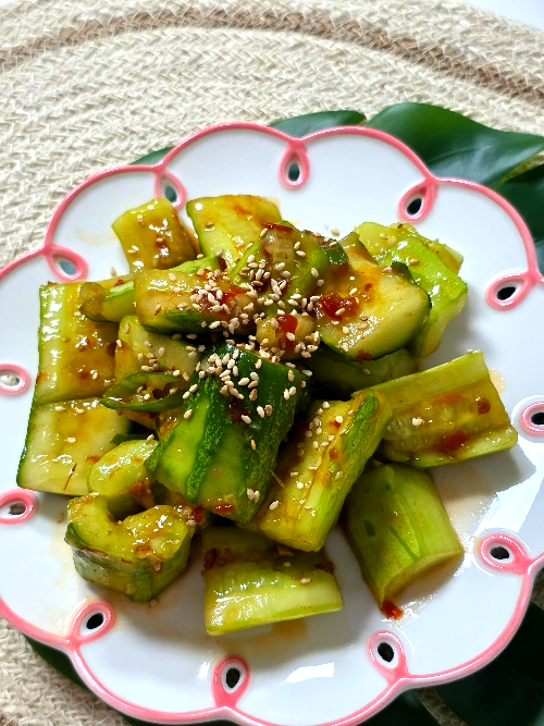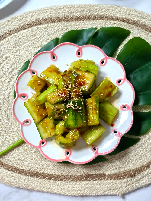 두반장소스를 이용해서 텁텁하지 않고 깔끔한 맛이 매력적인 오이무침이었어요.