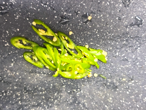 4. 청양고추 1개를 어슷썰기 해주세요.