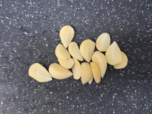 2. 깐 마늘 7알을 2 등분해 주세요.