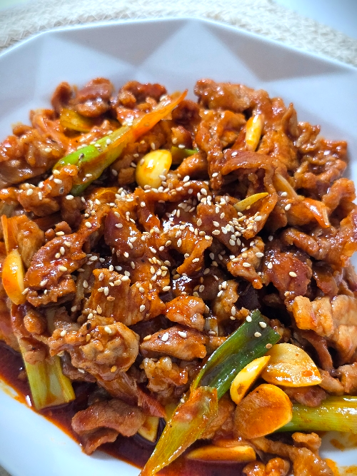 이렇게 제육볶음이 완성되었어요.