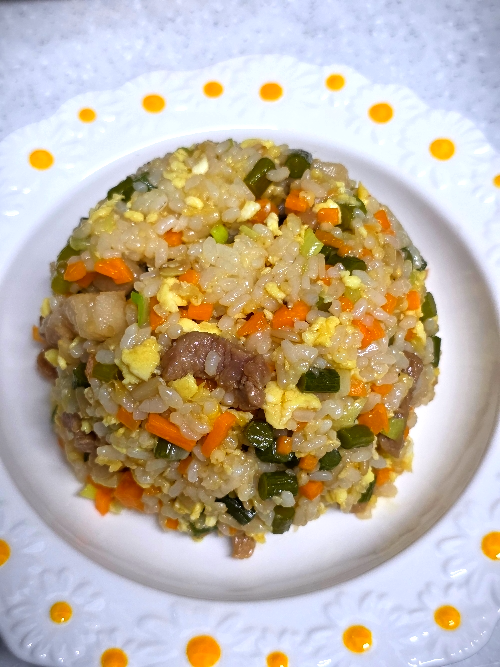 이렇게 마늘종볶음밥이 완성되었어요.