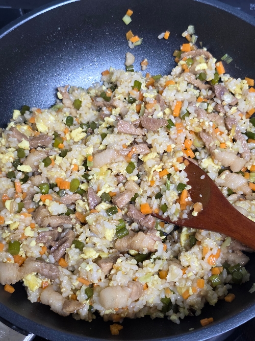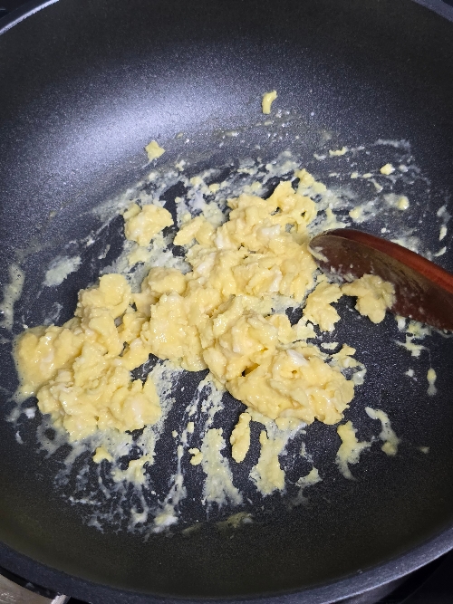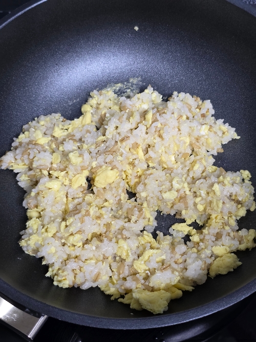 밥알에 달걀이 코팅되도록 빠르게 볶아주세요.